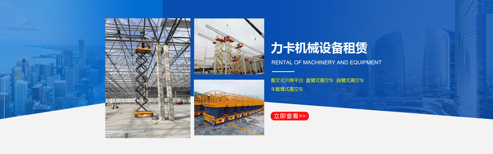 洛陽力卡機械設備租賃有限公司是一家從事高空作業(yè)平臺租賃的企業(yè)。公司現(xiàn)有6-12米剪叉式升降平臺、16-20米曲臂式高空車、20-58米直臂式高空作業(yè)車、自行越野剪叉車等,車輛新、型號齊全、可滿足各種高度、各種環(huán)境的高空作業(yè)。公司全部采用品牌設備安全又可靠。
